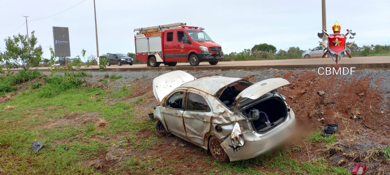 O senhor W.;F.A. de 34 anos, condutor do veículo, foi atendido e avaliado, apresentava dor e escoriações na cabeça, dor e deformidade no braço esquerdo, escoriações no braço direito, queixa de dor na cervical, transportado consciente, orientado e estável ao IHBB – Instituto Hospital de Base de Brasília.