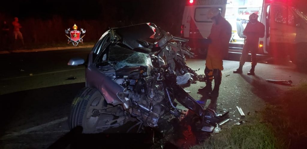 Segundo a corporação, a colisão foi frontal e o motorista do carro, Jefferson, de 31 anos, não resistiu e faleceu no local. Após a batida, os veículos, com o impacto, pararam a cerca de 60 metros um do outro.