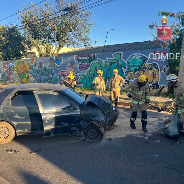 Chegando ao local da emergência, a equipe de socorro deparou-se com um Fiat Pálio, de cor azul, que havia acabado de colidir contra um poste de iluminação pública. A condutora, a jovem K. M. N. S, de 23 anos, foi atendida por nossos socorristas e transportada, consciente e orientada, para o Hospital Regional de Taguatinga, queixando-se de dores na região do tórax.