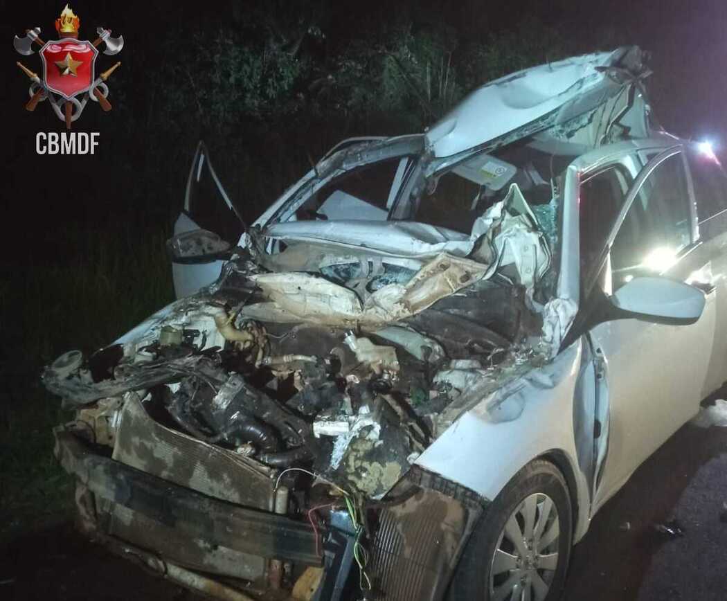 Segundo o Corpo de Bombeiros Militar do Distrito Federal (CBMDF), ao chegar no local, as equipes encontraram o homem, de aproximadamente 50 anos, já morto e preso às ferragens. O motorista estava sozinho no carro.