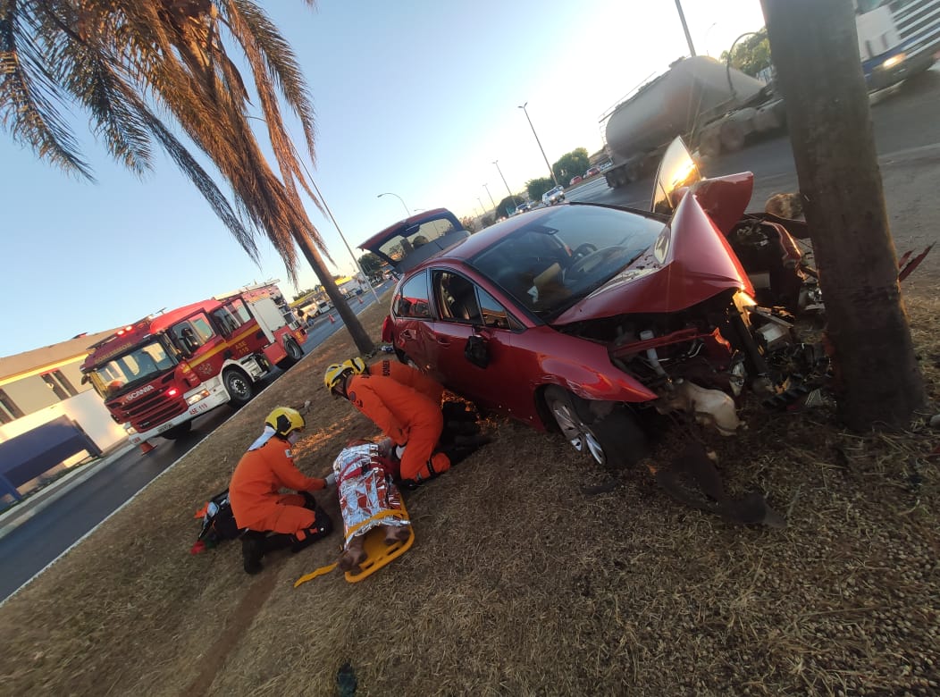 Um carro de passeio colidiu com uma árvore próximo ao McDonald’s localizado em frente à Candangolândia, na Estrada Parque Indústria e Abastecimento (Epia). Motorista e passageira ficaram feridos.