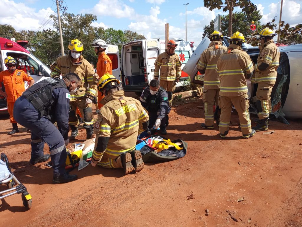 No interior do automóvel, estavam três pessoas, todas do sexo masculino. Um deles conseguiu sair e estava andando pela cena quando equipes do Corpo de Bombeiros Militar do Distrito Federal (CBMDF), chegaram para prestar socorro. Apesar de consciente, o homem estava ferido e foi levado ao hospital.
