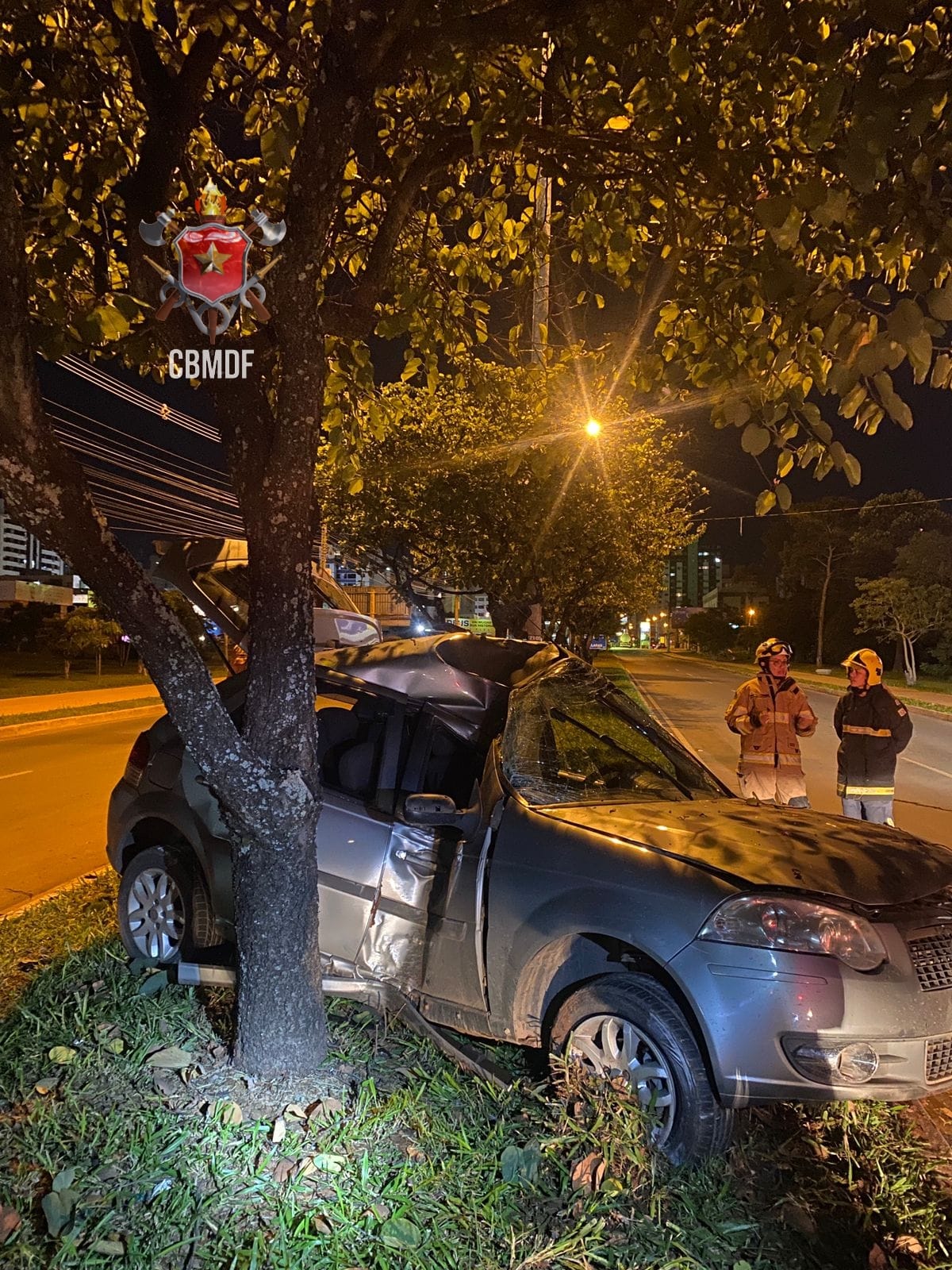 O motorista conseguiu sair sem mais ferimentos, sendo conduzido ao Hospital Brasília.