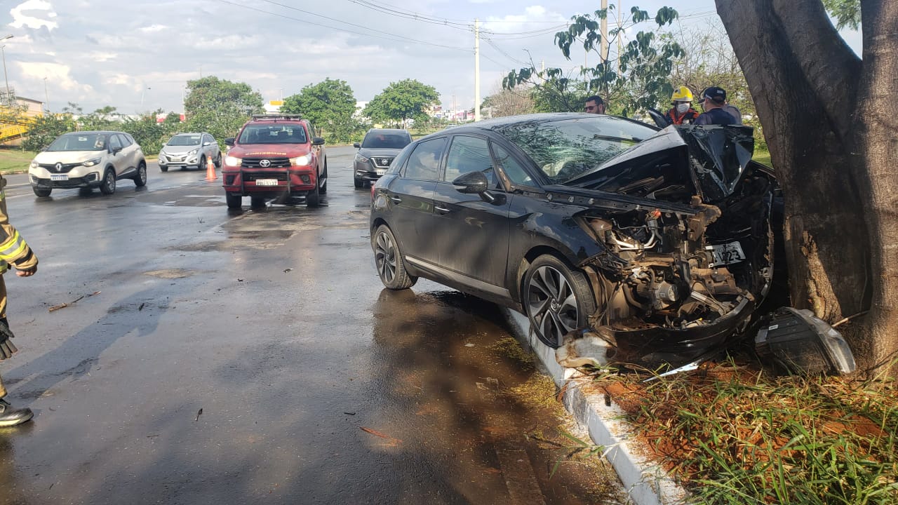 Nesta terça-feira (27), um carro colidiu com uma árvore no setor de cargas próximo ao SIA (Setor de Indústria e Abastecimento).