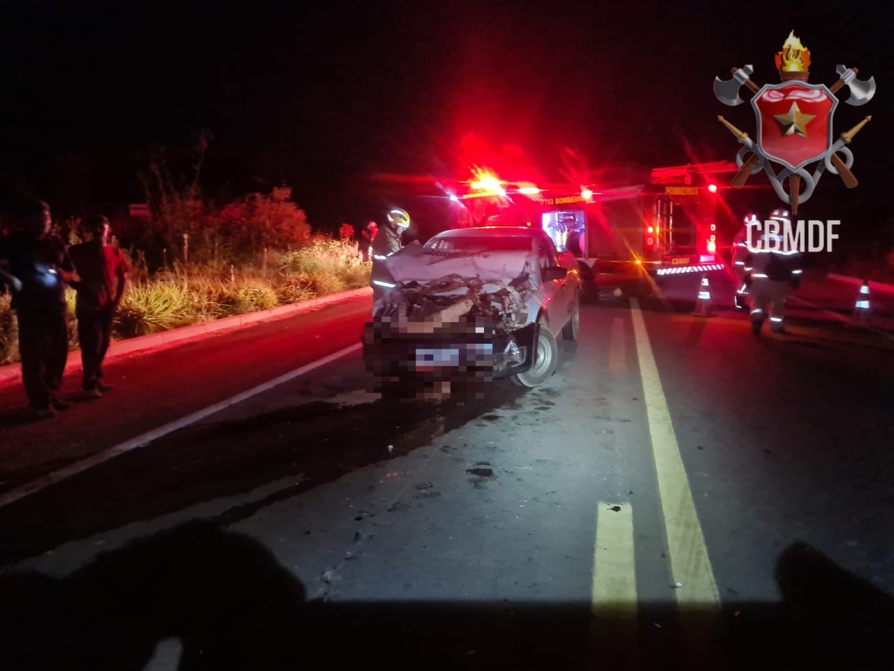 Uma colisão grave entre um carro de passeio e um caminhão na BR-251 chocou motoristas na noite de sábado.