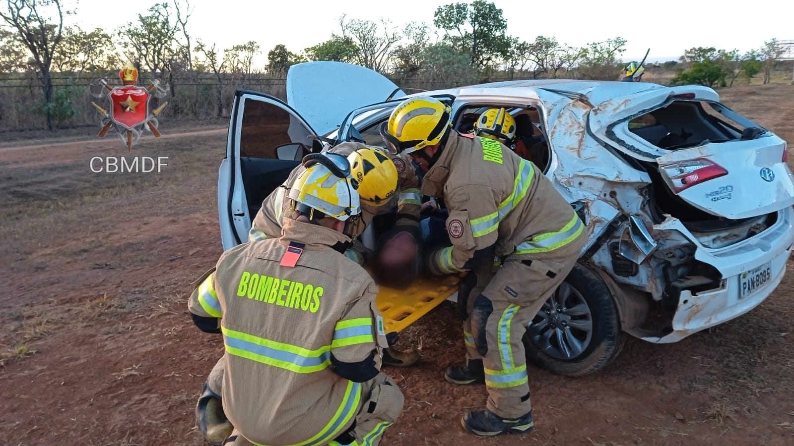 Segundo o Corpo de Bombeiros Militar do Distrito Federal (CBMDF), havia seis pessoas dentro do carro.