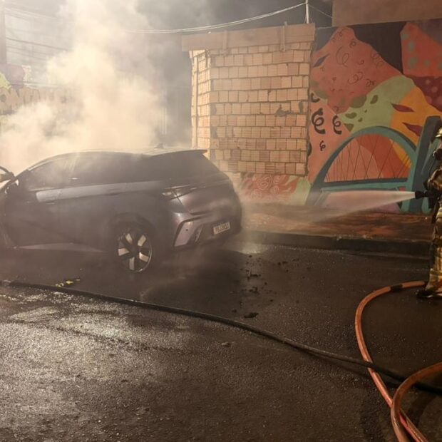 Segundo a corporação, o chamado foi registrado por volta das 4h53. Três viaturas foram deslocadas até o local, onde os militares encontraram um BYD Dolphin Plus 310EV completamente em chamas.