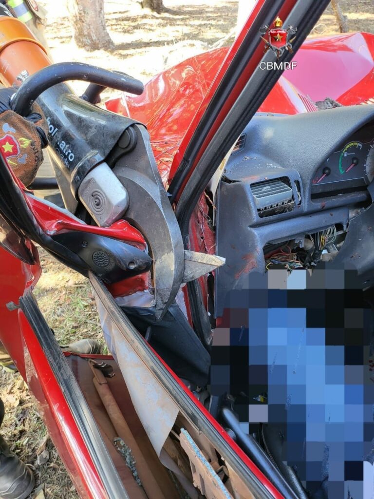 A vítima era um senhor de 42 anos, que perdeu o controle da direção e colidiu com uma árvore no canteiro central da via, Devido a colisão ele ficou com as pernas presas às ferragens sendo necessário o uso do aparelho desencarcerador para retirá-lo do veículo.