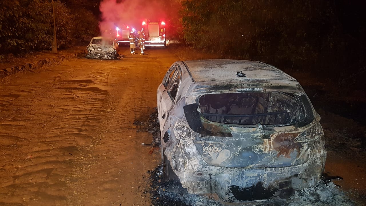 Chegando ao local, a equipe já encontrou os veículos completamente tomados pelas chamas. O fogo foi extinto, mas nada dos carros pode ser recuperado.