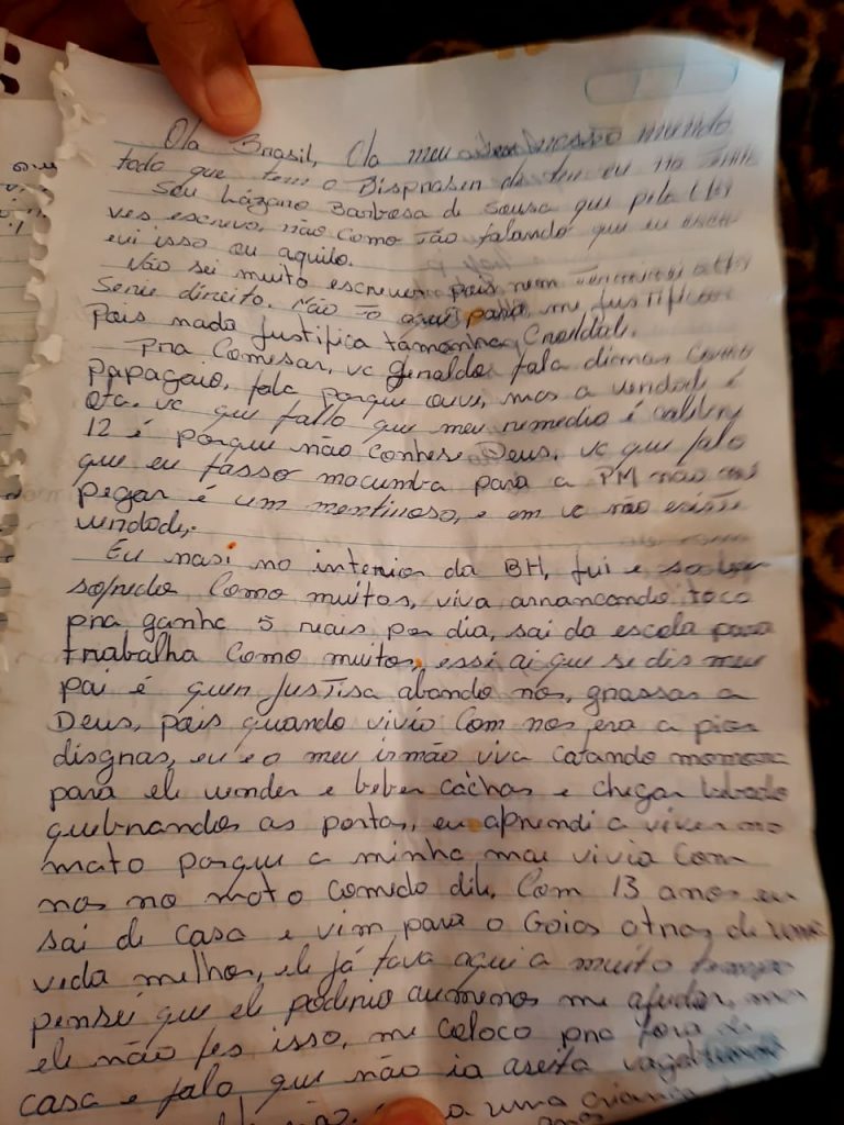 A chácara fica próximo ao distrito de Girassol, em Cocalzinho de Goiás-GO, de onde as buscas por Lázaro se concentram. A carta está escrita em primeira pessoa, e o autor se identifica como “Lázaro”. Leia na íntegra: