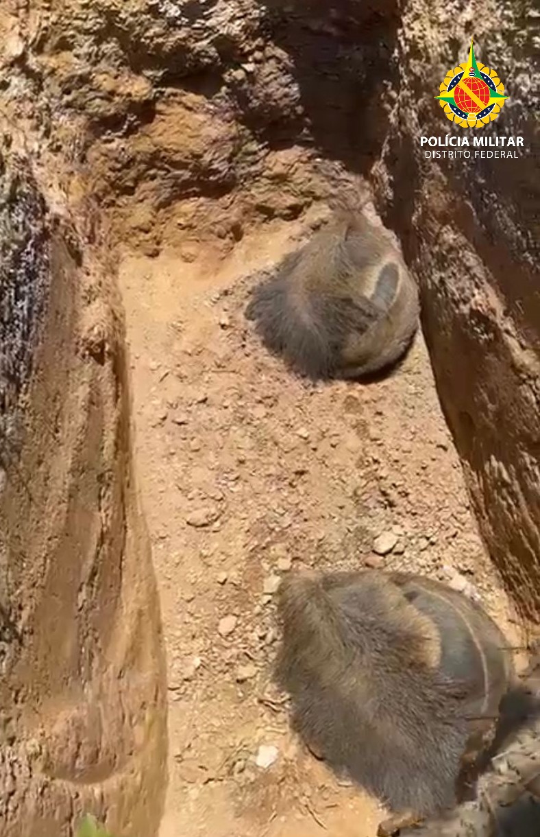 O Batalhão de Polícia Militar Ambiental (BPMA) realizou um resgate na tarde da última quarta-feira (15), a equipe um casal de tamanduás bandeiras que haviam caído em um buraco na construção de uma chácara, na região da Fazenda Monte Líbano, próxima ao Gama.
