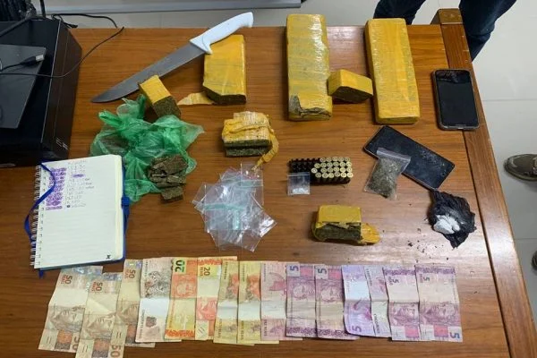 A ação foi desencadeada após eles serem flagrados vendendo maconha a um usuário. No interior da casa onde residiam, os investigadores encontraram tabletes da droga, 23 projétil calibre.38, uma porção de cocaína, dinheiro e um caderno com anotações do tráfico.