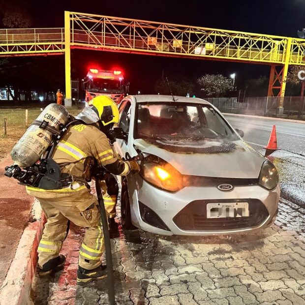 O Corpo de Bombeiros Militar do Distrito Federal (CBMDF) foi acionado na noite desta terça-feira (1º), por volta das 23h48, para atender uma ocorrência de incêndio veicular na QN 05, próximo à passarela na saída do Riacho Fundo.