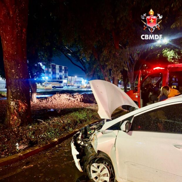 CBMDF é acionado após veículo colidir com árvore em Taguatinga