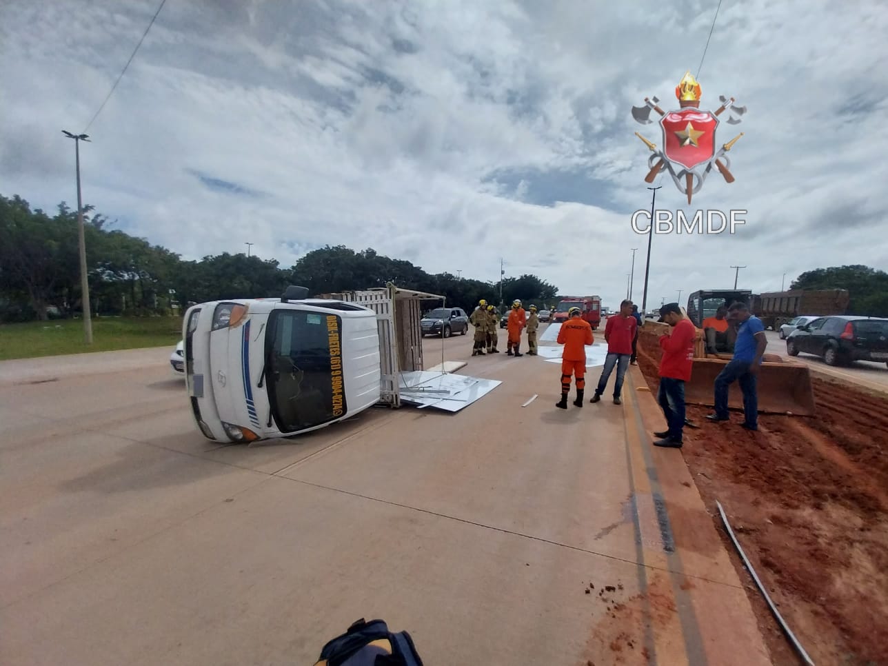 O acidente envolveu um veículo de porte médio que transportava uma carga composta por diversas chapas metálicas de grande diâmetro, seguindo no sentido Ceilândia. Ao chegarem ao local, as equipes de socorro constataram que se tratava de um caminhão Hyundai/HR de cor branca, tombado na faixa central de rolamento da DF 095.