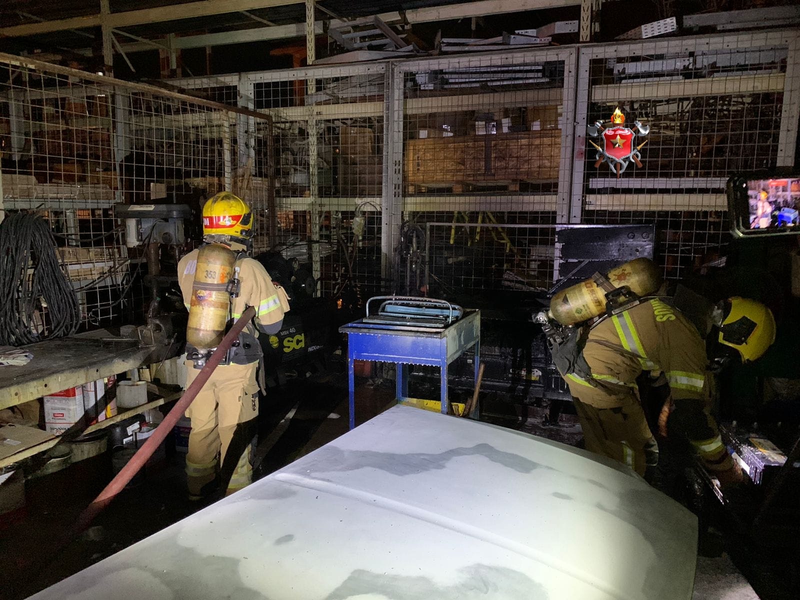 Chegando ao local as equipes verificaram o galpão, com dimensões aproximadas de 1000 m2, com grande quantidade de fumaça. Foi necessário cortar dois cadeados para abrir o portão, permitindo assim que a equipe entrasse no local para localizar o foco.