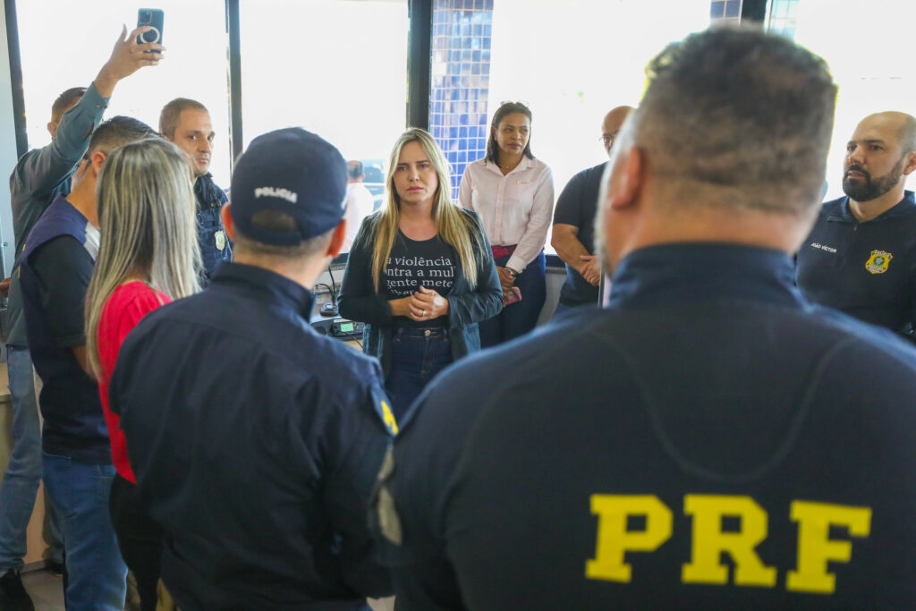 Logo cedo, às 9h30, ela esteve na Polícia Rodoviária Federal, onde conversou com integrantes da corporação e visitou instalações. Celina falou sobre a integração da pasta com as demais forças de segurança e agradeceu aos agentes. “Parabéns pelo trabalho belíssimo que vocês fazem”, disse ela.