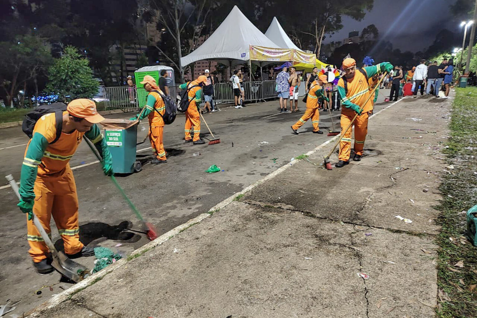 Em 2019, houve a coleta de 49,7 toneladas e, em 2018, de 82 toneladas. Ano passado, a força-tarefa de limpeza contou com 1.167 garis, além de 20 fiscais por dia e 38 veículos para ações de limpeza e fiscalização. Foram utilizados mais de 8,4 mil sacos de lixo.
