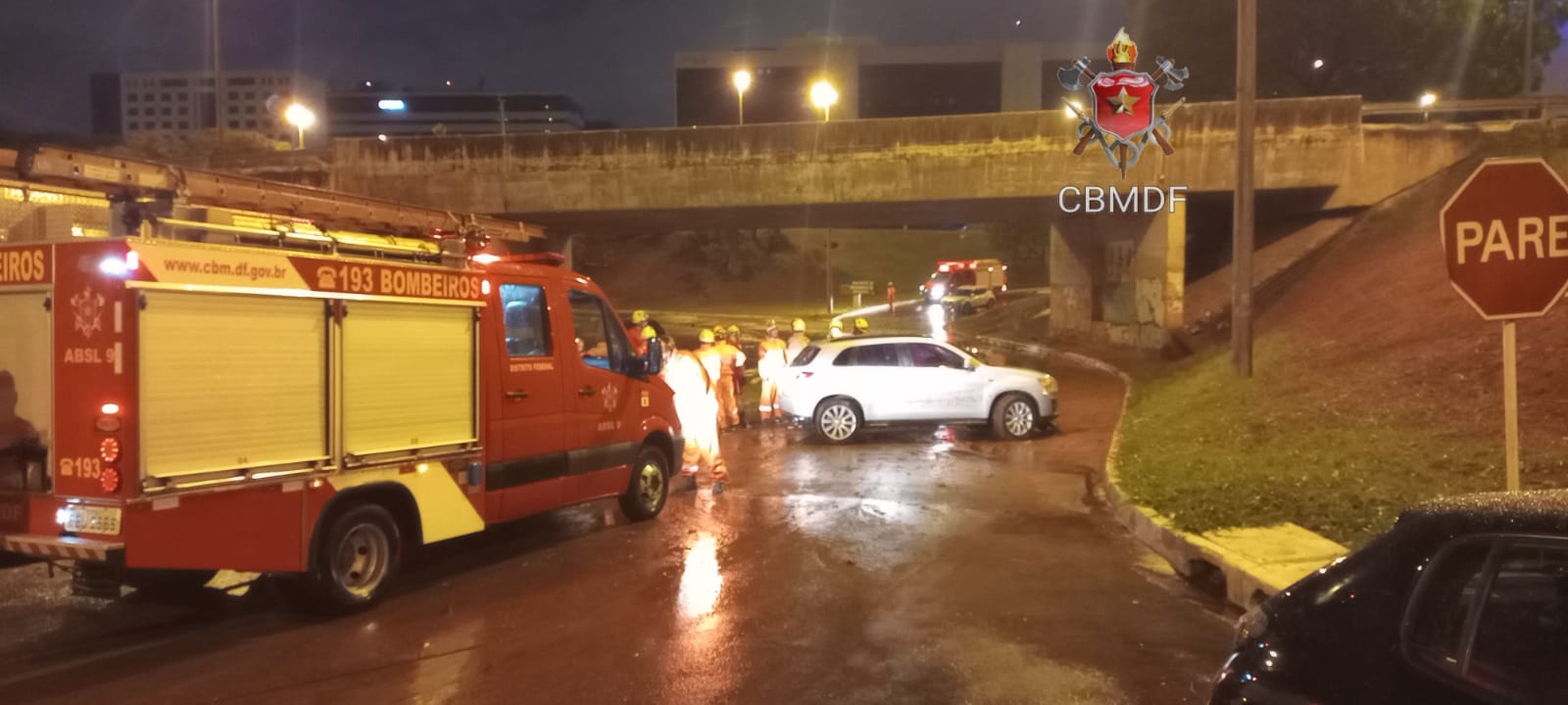 A via S3, embaixo do viaduto da L2 Sul, ficou alagada após a forte chuva. Em decorrência do alagamento no local, 6 veículos ficaram ilhados e presos na inundação. As pessoas que estavam dentro desses automóveis (dez no total) foram socorridas pelas equipes de bombeiros para um lugar seguro. Além do socorro aos ocupantes, os militares conseguiram retirar alguns veículos que estavam parcialmente inundados no local. Nenhuma pessoa se feriu ou precisou de atendimento médico em decorrência do alagamento.
