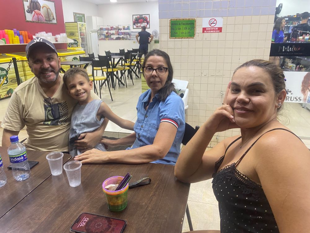 Tedis Castro, 53, eletrotécnico e Ana Lúcia Alves, 44, administradora, trouxeram o neto Artur de dois anos para tomar sorvete, porque o calor está o afetando mais. “Está tenso, estamos esperando a chuva”. Além do sorvete, Tedis e Ana afirmam que tomam bastante água para aliviar. “mas hoje estava muito quente”, completa Ana.