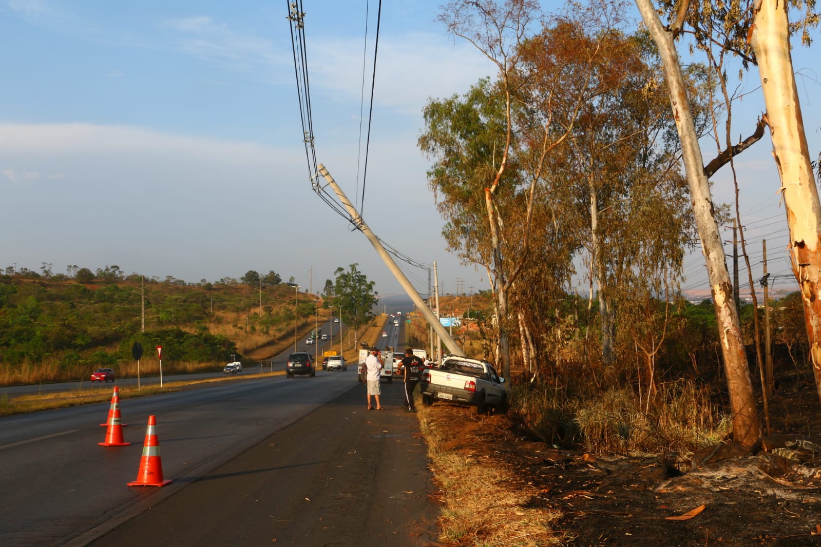 Em seguida, uma motocicleta derrapou na pista e para evitar a colisão, o veículo que estava atrás, uma Fiat Strada, desviou para direita e atingiu outro poste. Não houve vítimas graves e apenas uma passageira, que estava na motocicleta precisou ser encaminhada ao hospital.