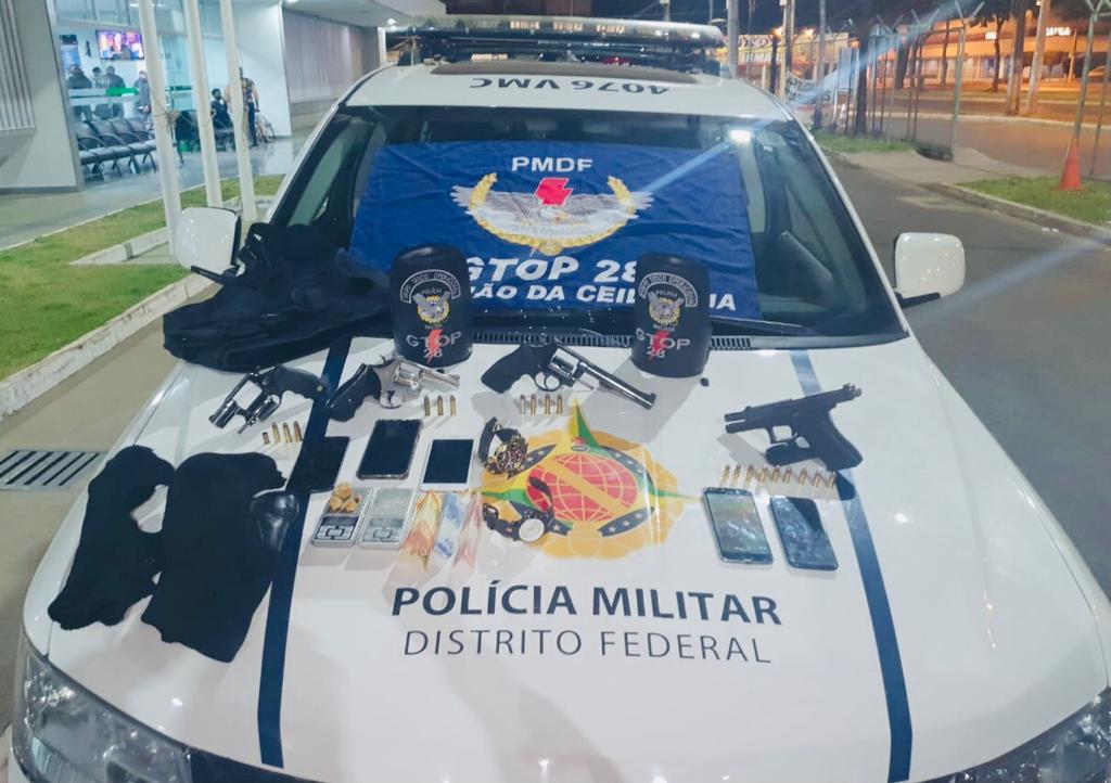 Na noite de segunda-feira (31), a Polícia Militar do DF apreendeu quatro armas e prendeu cinco homens por posse irregular de arma de fogo, na QNN 3, Conjunto I, em Ceilândia.