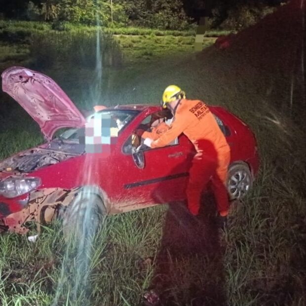 Quando chegaram ao ponto indicado, as equipes encontraram um Fiat Palio, de cor vermelha, que havia capotado após colidir com o guard rail. Após a sinalização da via e o gerenciamento dos riscos, os bombeiros iniciaram o atendimento ao ocupante do veículo.