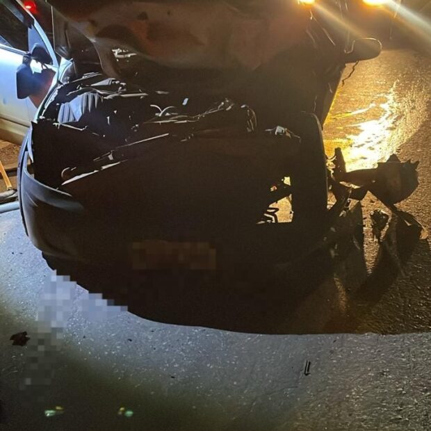 Ao chegarem ao local, os militares encontraram um Chevrolet Montana Conquest, prata, que havia atingido a parte traseira de um caminhão Mercedes-Benz azul. As equipes realizaram o isolamento da área, sinalizaram o trecho da rodovia e iniciaram o gerenciamento de riscos antes de acessar o interior do automóvel.