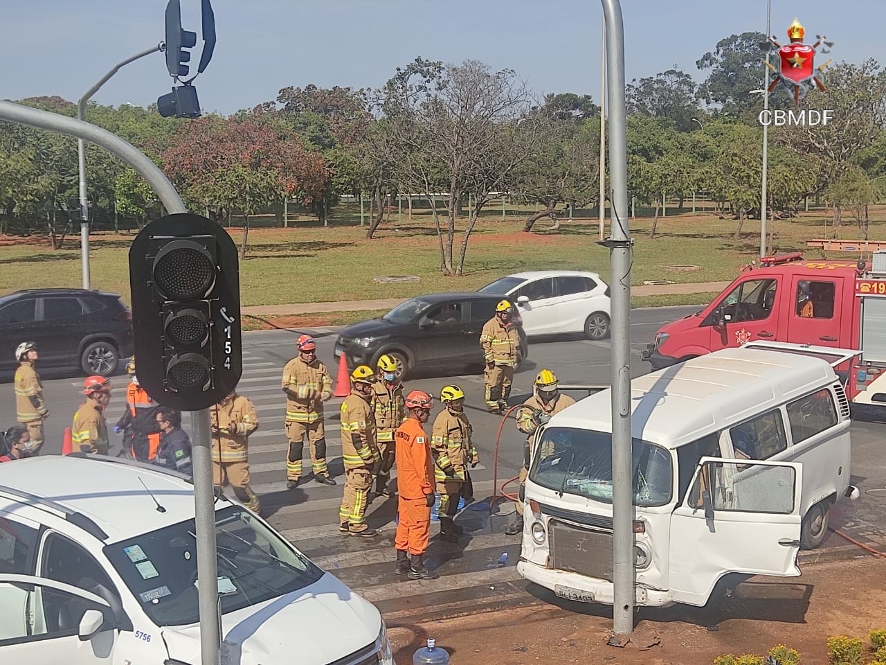 O Corpo de Bombeiros Militar do Distrito Federal (CBMDF) foi acionado na manhã desta segunda-feira (4), após uma colisão envolvendo uma Kombi e um Chevrolet/Spin.