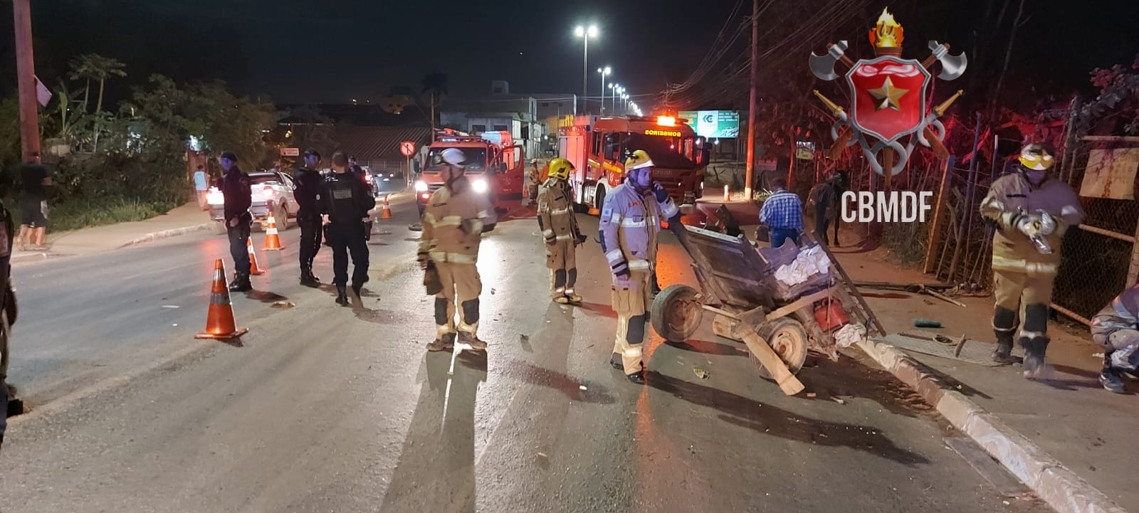 A carroça a propulsão humana era conduzida por um homem de 58 anos, que não apresentava ferimentos e foi atendido pelas guarnições de bombeiros. Além dele, uma mulher, também de 58 anos, estava embarcada na carroça e reclamava de dores na cabeça, costelas e abdômen. Contudo, a passageira estava consciente, orientada e em estado estável. As equipes do CBMDF prestaram os primeiros socorros no local e, após o atendimento inicial, a mulher foi encaminhada para o Hospital de Base para uma avaliação médica mais detalhada.
