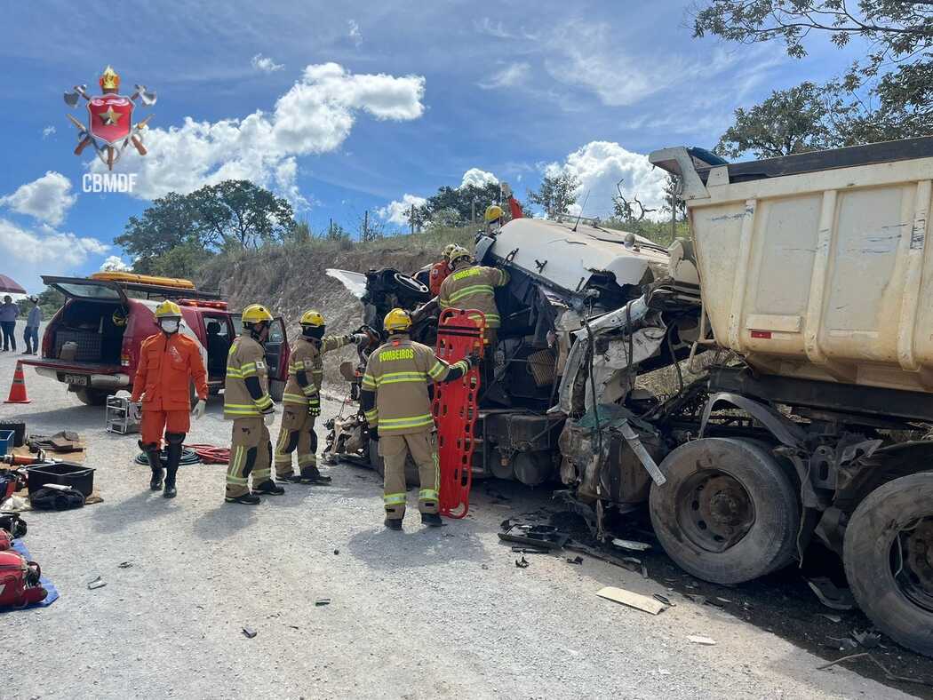 O Corpo de Bombeiros Militar do Distrito Federal (CBMDF) atendeu, no início da tarde desta terça-feira (28), uma colisão frontal entre duas carretas na BR-080, próximo a Brazlândia.