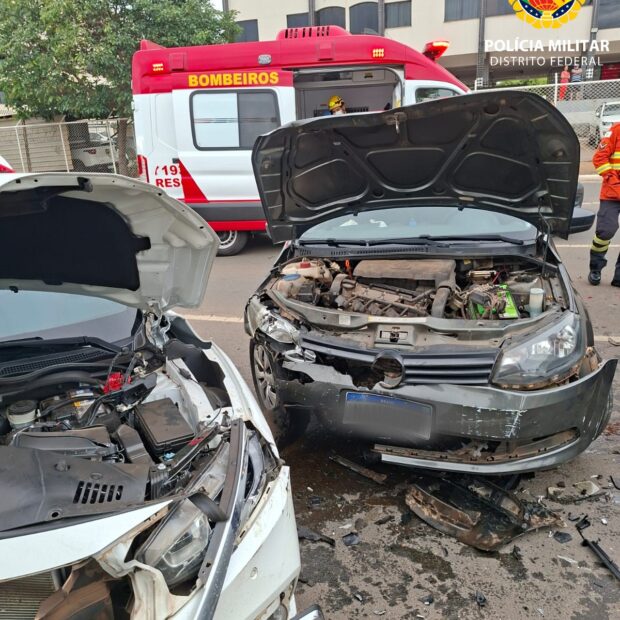 A Polícia Militar do Distrito Federal (PMDF) foi acionada para atender uma ocorrência de acidente de trânsito na QNL 7, em Taguatinga, após um veículo invadir a faixa contrária e colidir com outros dois automóveis.
