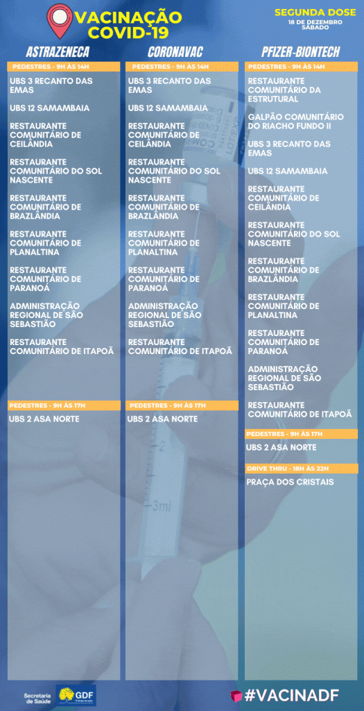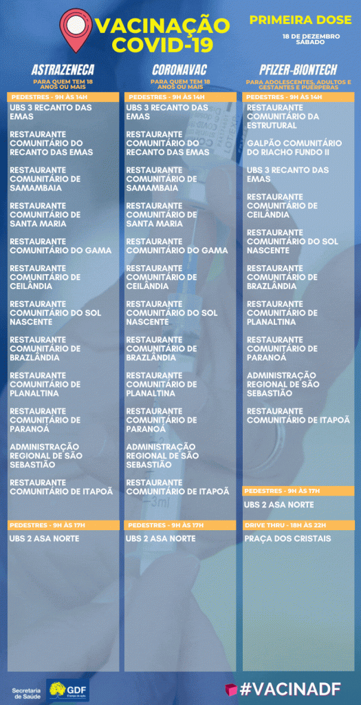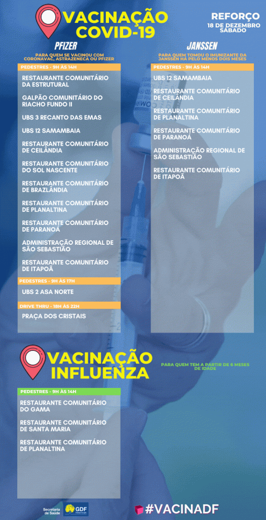 Confira os pontos de vacinação contra a covid-19 e a influenza