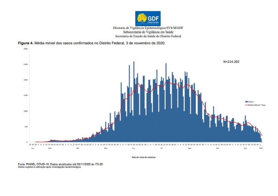 Do total de 214 mil casos, 3.707 (1,7%) faleceram em decorrência de complicações causadas pelo vírus e 205.387 (95,9%) estão recuperados. Do total de óbitos, 3.410 eram moradores do DF e 297 de outros estados.