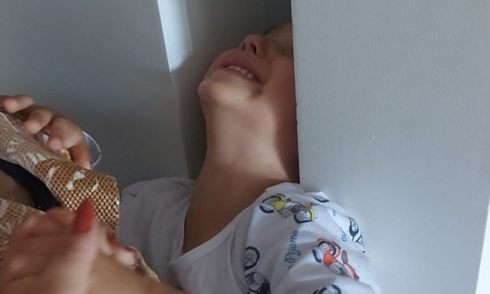 O pequeno, chamado Lorenzo, foi amparado pela sua avó. Tudo aconteceu em uma brincadeira, as colunas ficam localizadas na sala da residência.