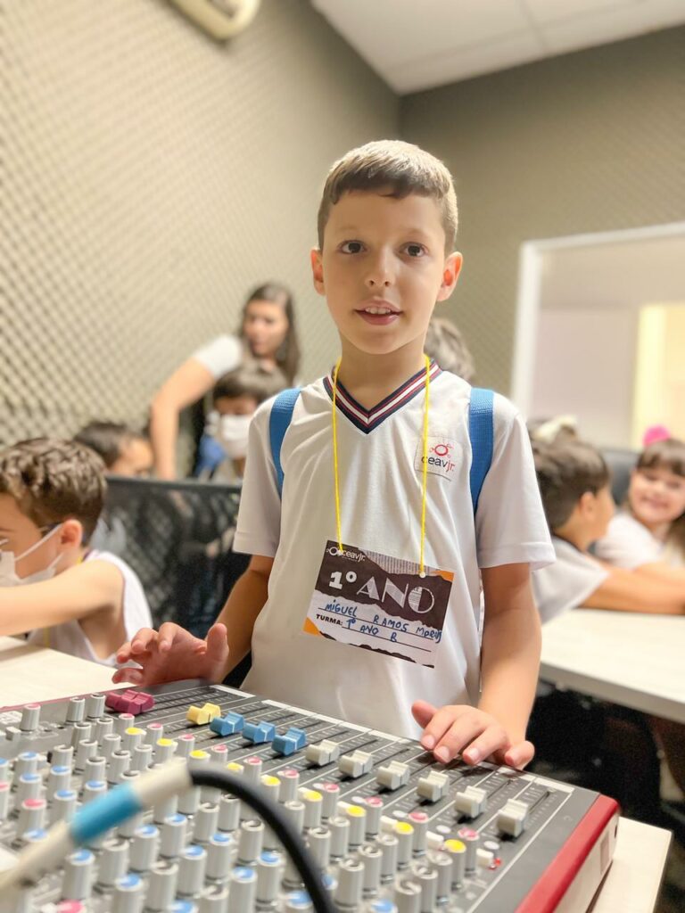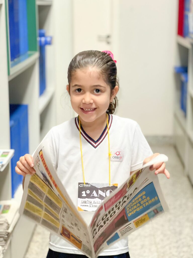 Crianças das turmas do 1º ano de todas as unidades do CEAV Jr, participaram na última segunda-feira (12/09) de um passeio escolar pelo Jornal de Brasília. O tour contou com a participação especial do editor chefe da redação, Lindauro Gomes, de visitas ao estúdio de rádio, estúdio de televisão e na gráfica onde costumavam ser produzidos os jornais impressos do veículo. Os alunos ficaram impressionados ao conhecer o maquinário, que é uma relíquia! Segundo a coordenadora escolar, Kallini Barbosa, o ponto alto da visita foi esse, sendo perceptível os olhos dos alunos brilhando no momento em que as máquinas de impressão foram ligadas.