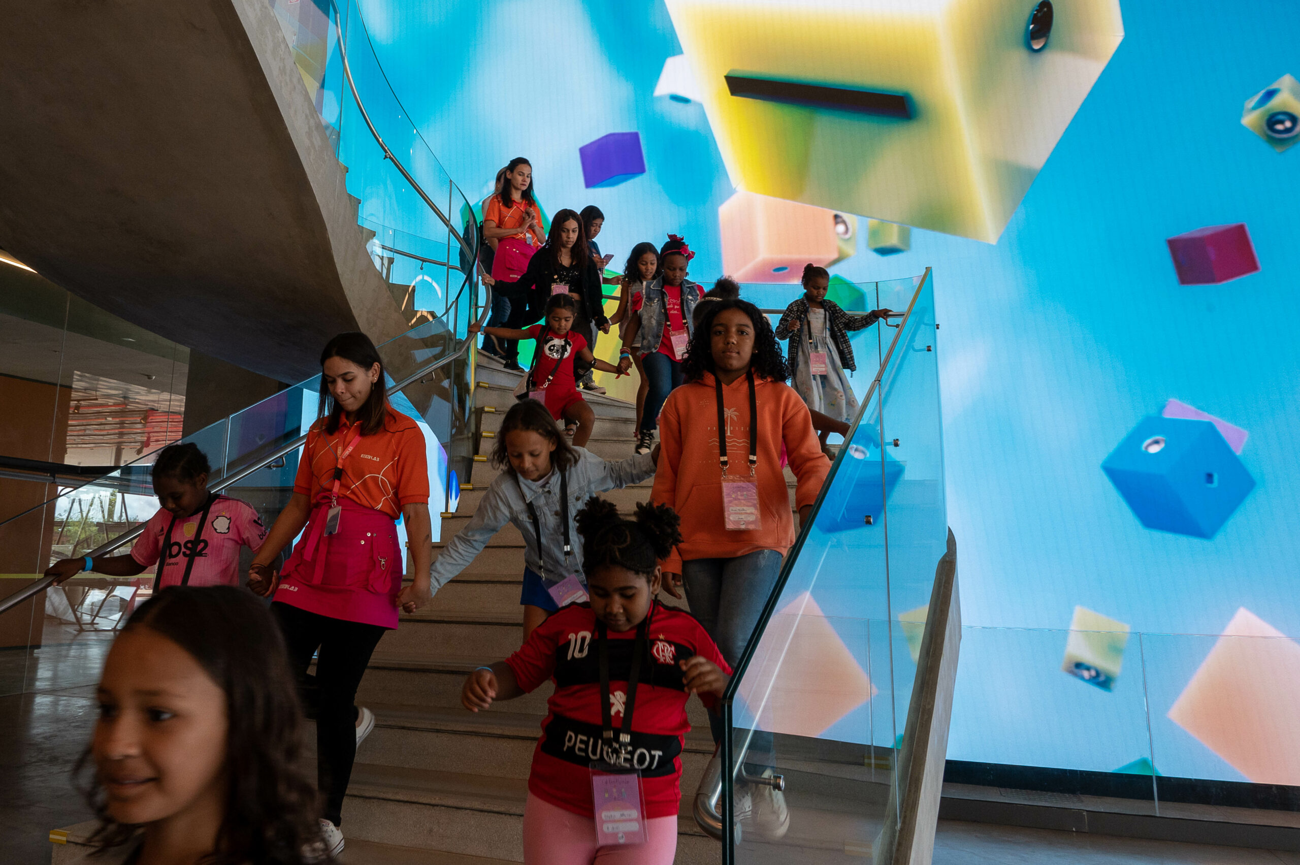 Ao todo, cerca de 30 meninas entre 8 e 14 anos participaram do passeio que contou com um tour mediado pela equipe do museu, oficina maker e bate-papo com Tonika Sealy-Thompson, embaixadora de Barbados na República Federativa do Brasil.