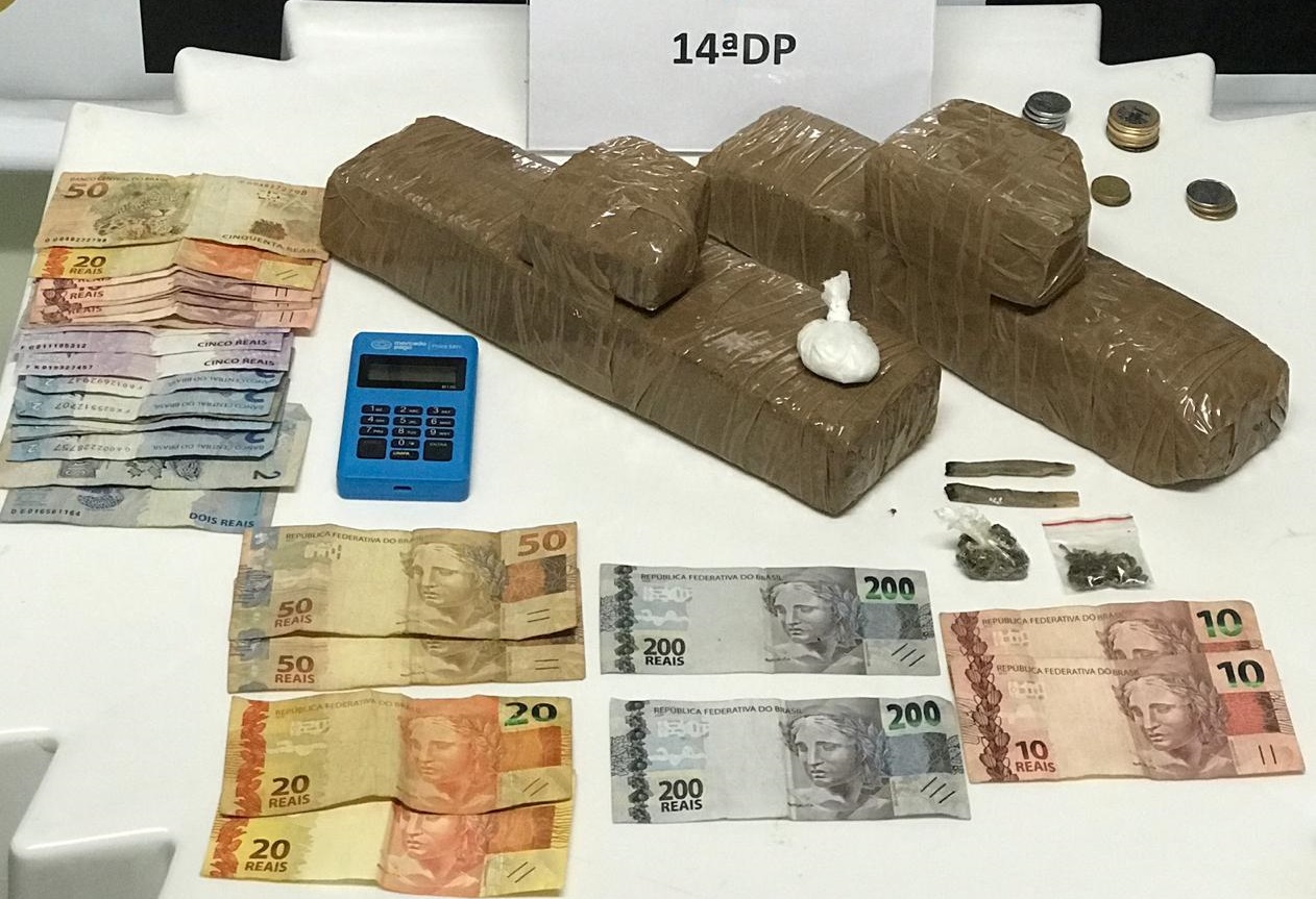 Durante a operação, foram apreendidos tabletes de maconha, dinheiro em espécie, máquina de cartão de crédito, anotações que indicam o tráfico e um carro usado para transportar os entorpecentes.