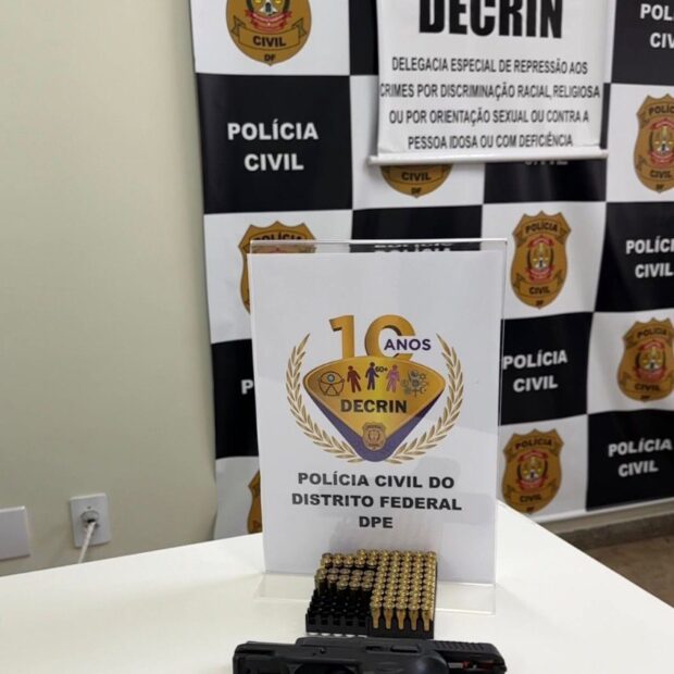 Nesta terça-feira (17), a Justiça autorizou mandado de busca e apreensão na residência do suspeito, no Núcleo Bandeirante. No local, os policiais apreenderam a arma mencionada nas denúncias.