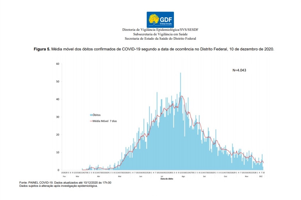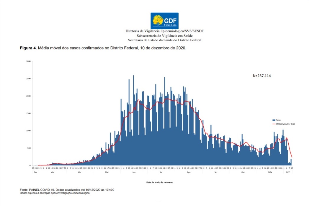 Do total de 237 mil casos, 4.043 (1,7%) faleceram em decorrência de complicações causadas pelo vírus e 225.872 (95,3%) estão recuperados. Do total de óbitos, 3.713 eram moradores do DF e 330 de outros estados.