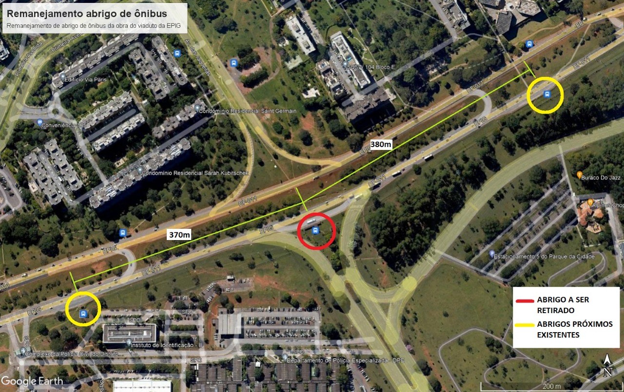 Uma das modificações é a desativação do abrigo de ônibus situado em frente à entrada e saída do Parque da Cidade, próximo ao edifício-sede da Polícia Civil do Distrito Federal (PCDF). Os demais pontos de transporte coletivo permanecem em funcionamento normal.