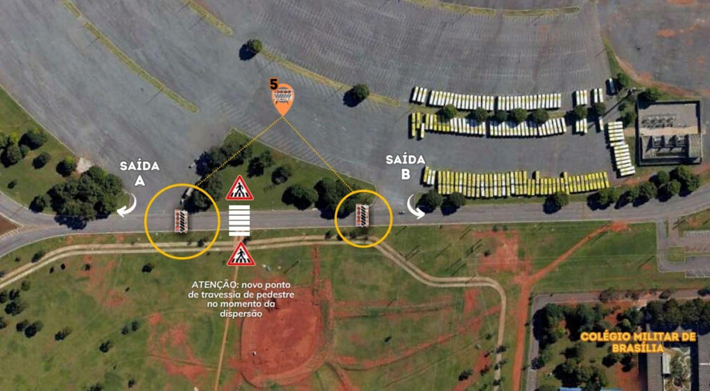 Para a dispersão do público, a partir das 17h, será implantada sinalização na altura do estacionamento rotativo para facilitar a travessia de pedestres e o controle do tráfego. No estacionamento leste, veículos usarão acessos à via de contorno do estádio: os da saída A serão direcionados para a via N2, enquanto os da saída B seguirão no sentido Colégio Militar.