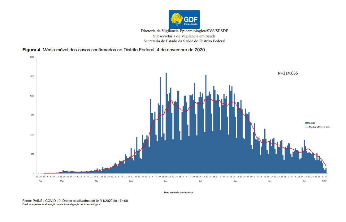 Do total de 214 mil casos, 3.719 (1,7%) faleceram em decorrência de complicações causadas pelo vírus e 205.973 (96%) estão recuperados. Do total de óbitos, 3.240 eram moradores do DF e 299 de outros estados.