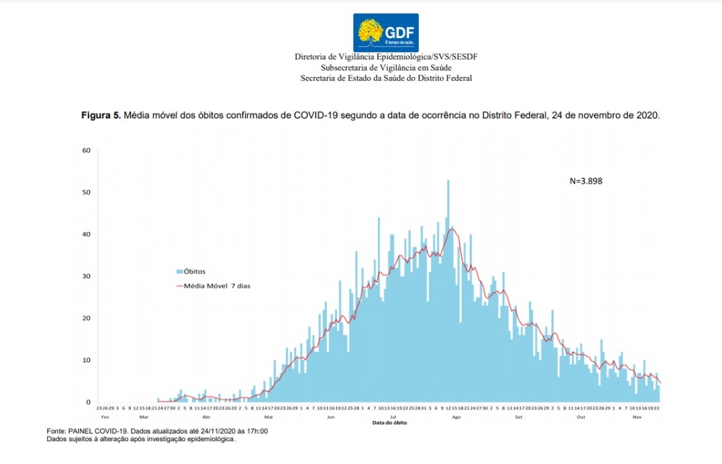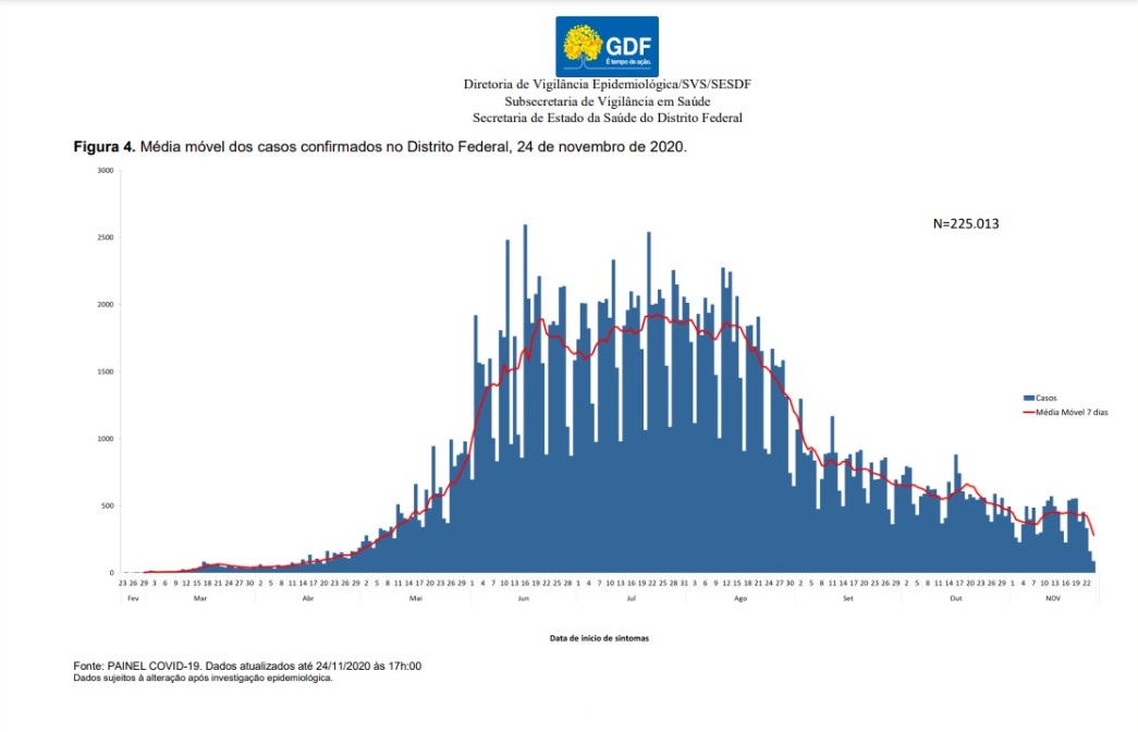 Do total de 225 mil casos, 3.898 (1,7%) faleceram em decorrência de complicações causadas pelo vírus e 215.453 (95,8%) estão recuperados. Do total de óbitos, 3.584 eram moradores do DF e 314 de outros estados.