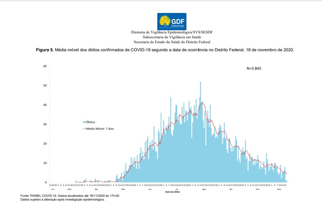 Do total de 212 mil casos, 3.845 (1,7%) faleceram em decorrência de complicações causadas pelo vírus e 212.622 (96%) estão recuperados. Do total de óbitos, 3.534 eram moradores do DF e 311 de outros estados.