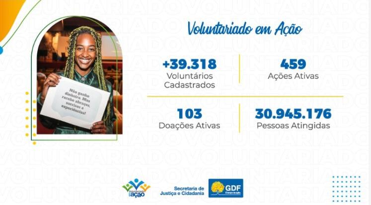 O site do Programa Voluntariado em Ação foi lançado em 2020, na pandemia, quando a população mais vulnerável do Distrito Federal teve que manter o isolamento social e enfrentar dificuldades para aquisição de alimentos, produtos básicos de higiene e alimentação. A iniciativa surgiu como solução para facilitar a comunicação e interação entre as pessoas. A plataforma funciona como uma rede social, conectando perfis de interesse com oportunidades de serviços voluntários. Também proporciona o encontro entre voluntários, organizações da sociedade civil (OSC) e governo, para trocarem experiências, divulgarem suas ações e participarem de projetos ofertados neste ambiente virtual.