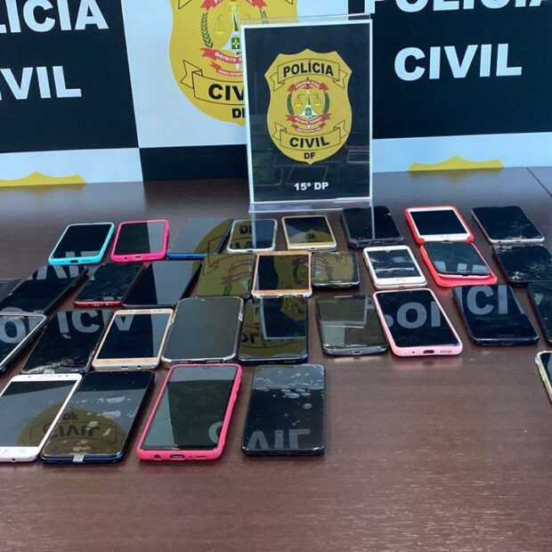 Ao realizar consultas nos sistemas policiais, foi constatado que um dos celulares estava relacionado a um roubo ocorrido em 2020, em uma loja em Taguatinga Norte. Outros dois dispositivos tinham restrições administrativas relacionadas a perda, furto ou roubo, conforme registros da Anatel.