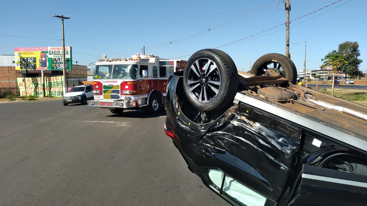 Um Nissan Kicks, de cor preta, e um Jeep Compas, de cor Branca, colidiram e, logo depois, capotaram na via marginal. O acidente não interferiu na circulação do trânsito.