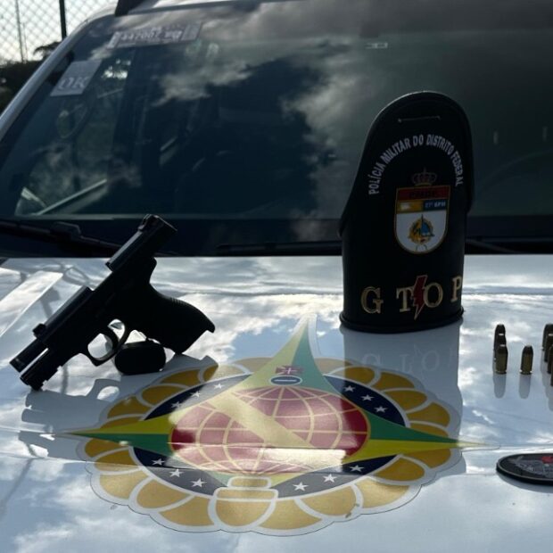 Policiais militares do Grupo Tático Operacional do 27º Batalhão (Gtop 47) prenderam um homem por porte ilegal de arma de fogo na tarde deste domingo (28) no Recanto das Emas.