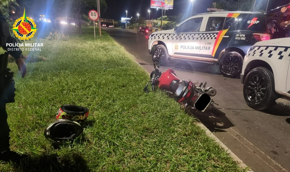 A Polícia Militar do Distrito Federal (PMDF) recebeu informações sobre uma dupla que estaria comercializando drogas na região da Candangolândia, conduzindo uma motocicleta. Os suspeitos foram avistados na altura do Km 5 da EPNB, seguindo em direção a Samambaia. Ao receberem a ordem de parada, os suspeitos não obedeceram, desencadeando uma perseguição que durou cerca de 15 minutos.